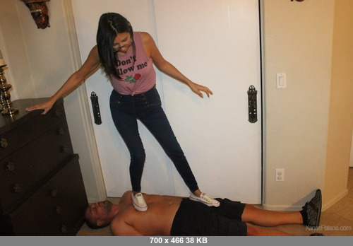 When Mystiques foot slave does not worship her feet to her satisfaction, he gets punished. Severly trampled and crushed under her cruel, yet very sexy feet. She loves to make him her carpet at the side of her bed and gets good use out of his body under her sneakers, using his mouth to clean her dirty sneakers. She makes him withstand the pressure of her large soled feet until he learns to give her gorgeous size 9's the attnetion they deserve.