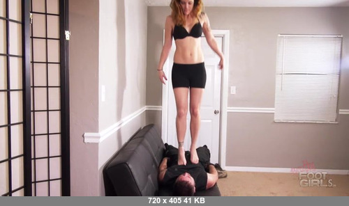 Sunshine really wants to brush up on her facestanding skills and balance. She has her slave laid out and she's all about stepping right on his upturned face and seeing how long she can hold her balance in multiple types of facestand poses. She doesn't care about his pain as his face goes bright red as she continually steps onto his face and head. She jut laughs and continues to hold her balance as he just has to lay there and be a doormat for his Goddess.