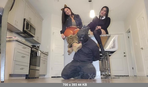 Lilac and Kitty are home after being in their sweaty heels all day. Their slave is laid out for them to use to make their feet feel better! They remove their shoes and start wiping their stinky feet all over his tongue. They love to jump on him and trample him as they make him clean their feet completely clean!