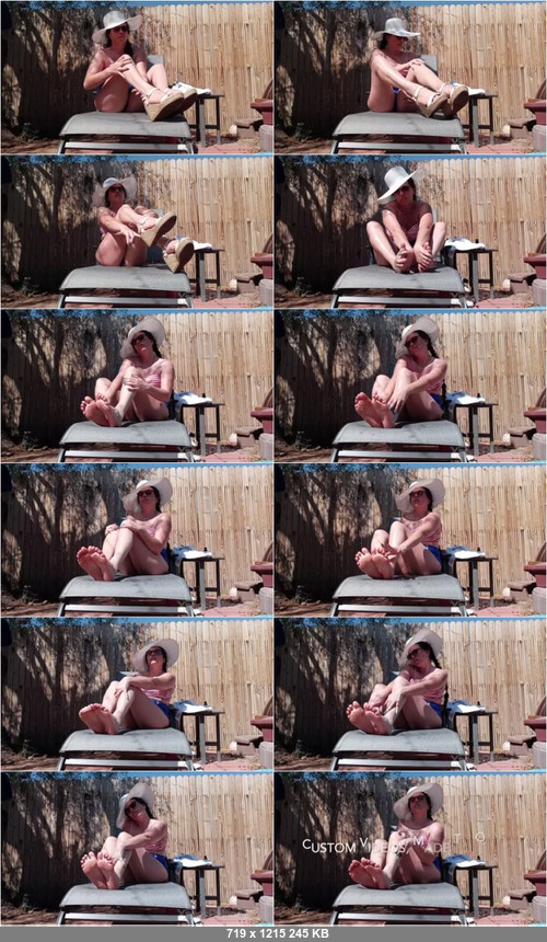 It's a gorgeous sunny day outside and Miss Annika takes advantage of the sunny day to do some tanning. She puts a generous amount of body oil on her soles ad legs before sensually working it into her skin.