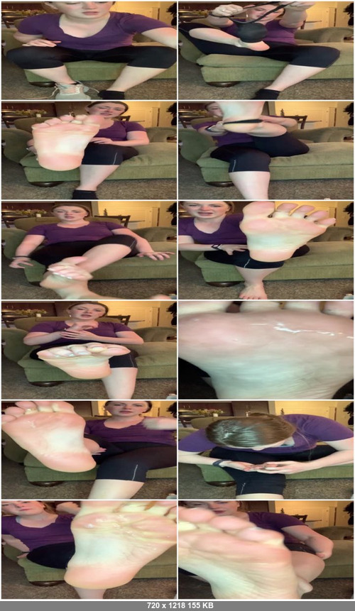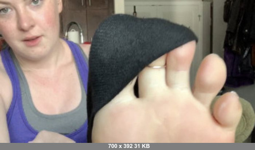 After a sweaty workout, Goddess Alice is so excited to get her socks off that she completely rips her black socks off! She pops her toes, rubs her feet and talks about how smelly they are before spitting in her soles and shoving them in your face.