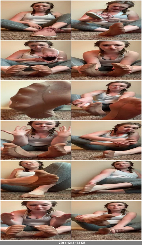 Alice just got back from her run and she wants to show off in her nylon ped socks that she knows you love. She sniffs her shoes and socks, talks dirty to you before beginning JOI and ending with a countdown.